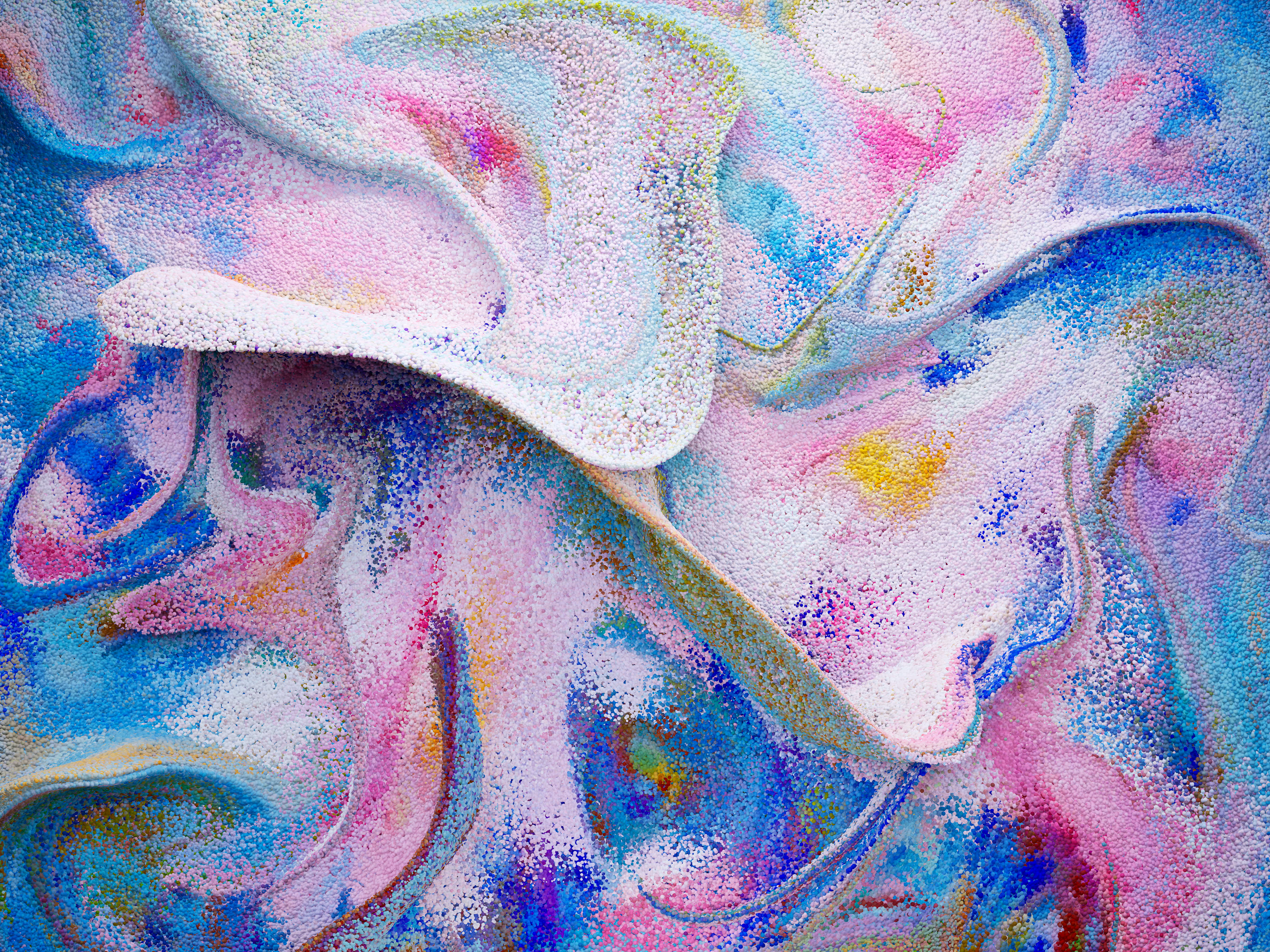Painter’s Meditation: Monet explores the calming and meditative qualities of nature through a generative art piece. Inspired by the beautiful colour compositions of Claude Monet’s floral paintings, the artwork utilises AI-powered image generation to create colour palettes. These palettes are then merged with a fluid particle simulation, resulting in a continuously evolving and evocative visual experience for meditation and reflection.